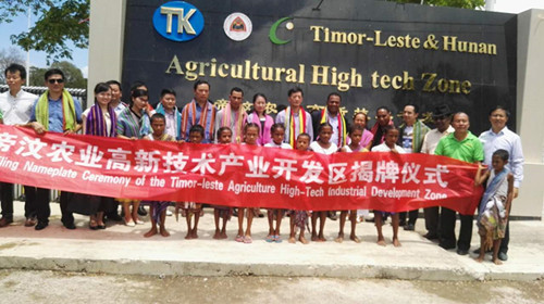 东农业部总秘书长凯撒、东帝汶贸易投资促进局赖司长、驻东使馆刘振华经商参赞、省商务厅伍一俊副处长、AG真人高科代表、驻东中资企业代表和湖南省商务厅、财政厅、浏阳经开区相关领导以及湖南商务考察代表团等出席开发区揭牌仪式。