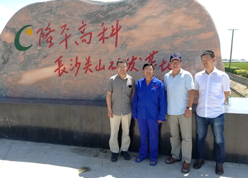 何祖华研究员(右二)、第一作者邓一文(左一)到AG真人高科关山研发基地指导科研工作